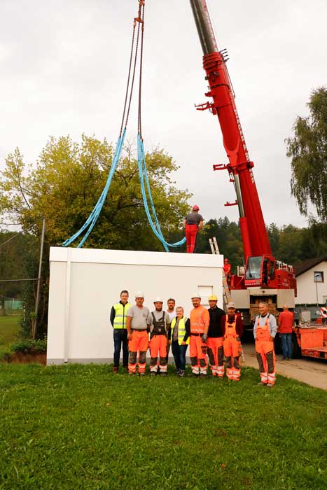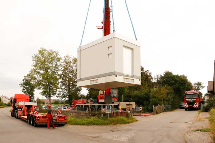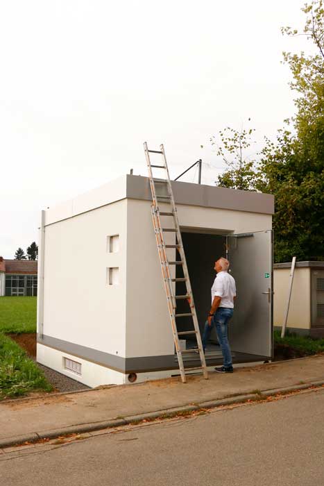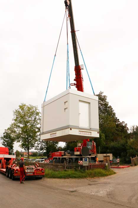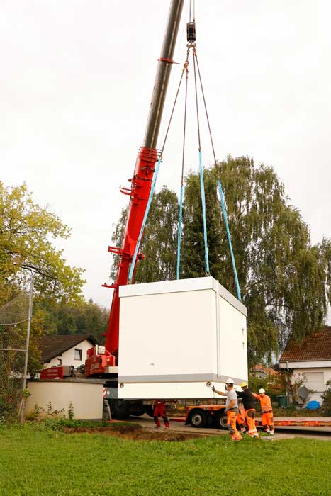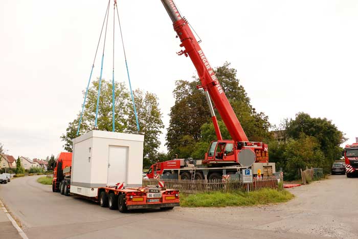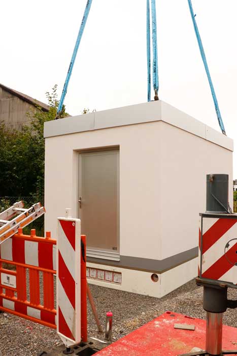 Es wurden bereits die ersten fünf von insgesamt acht PoP-Stationen angeliefert und erfolgreich aufgestellt. Die kleineren Betonstationen sind ca. 3,0 m x 3,0 m, die größen PoP-Stationen sind ca. 5,0 m x 3,0 m.